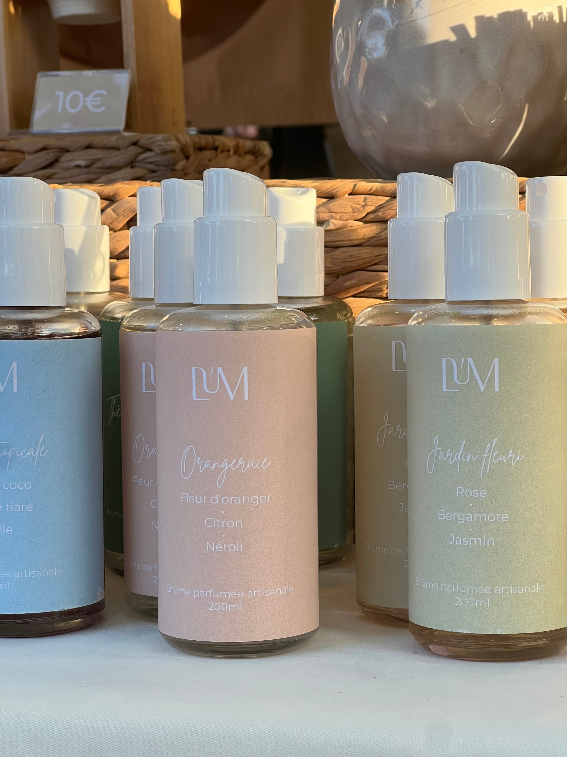 Chaque brume est formulée pour offrir un parfum intense et persistant qui reste dans l’air et sur les tissus. Disponibles en six parfums uniques, mes brumes vous permettront de personnaliser votre espace selon vos envies et vos besoins.